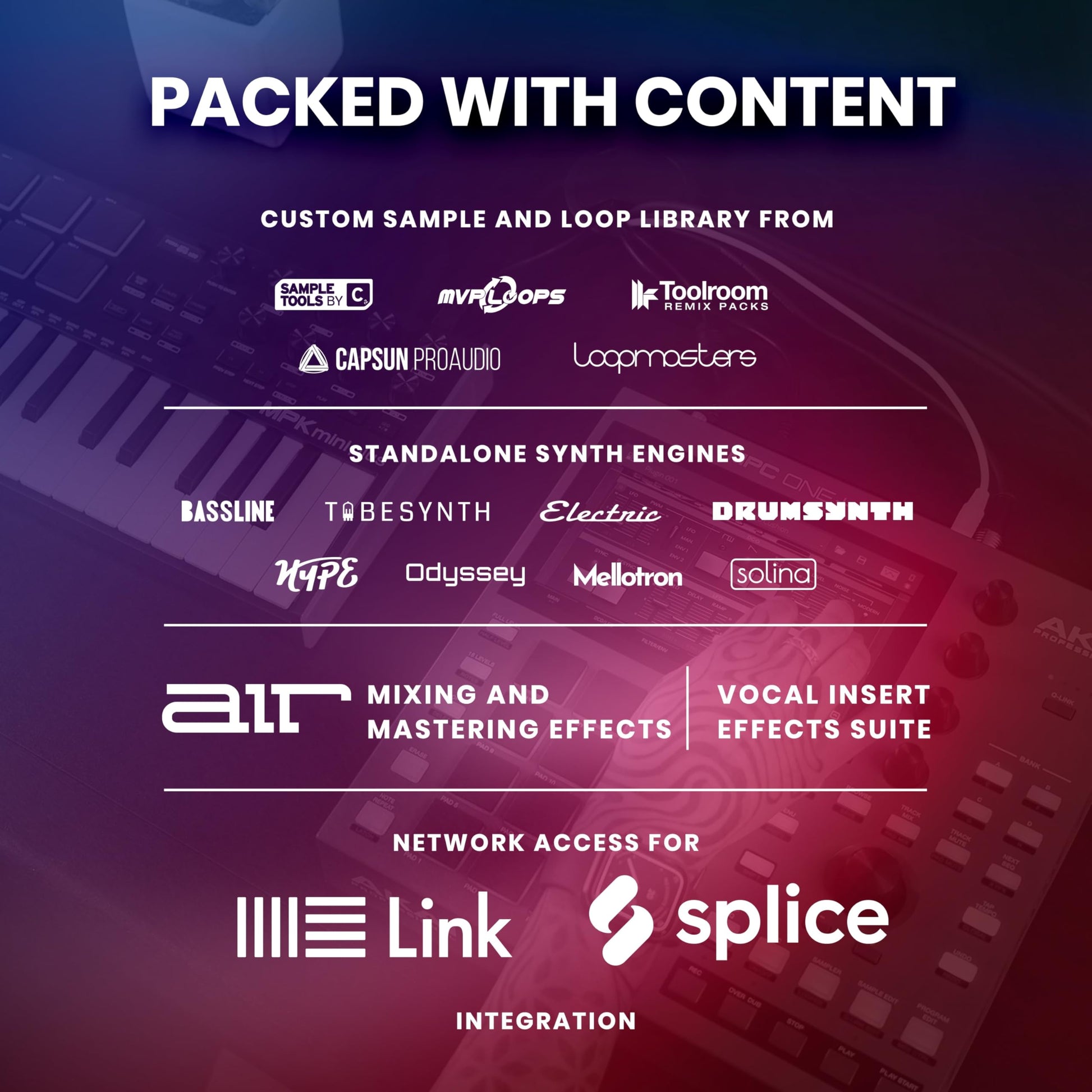 - On Demand Sound - Custom Sample and Loop Library; 128 MIDI and 8 Audio Tracks per Project; Exclusive Standalone Synth Engines; Premium AIR FX For Mixing and Mastering; Network Access for Splice and Ableton Link 3