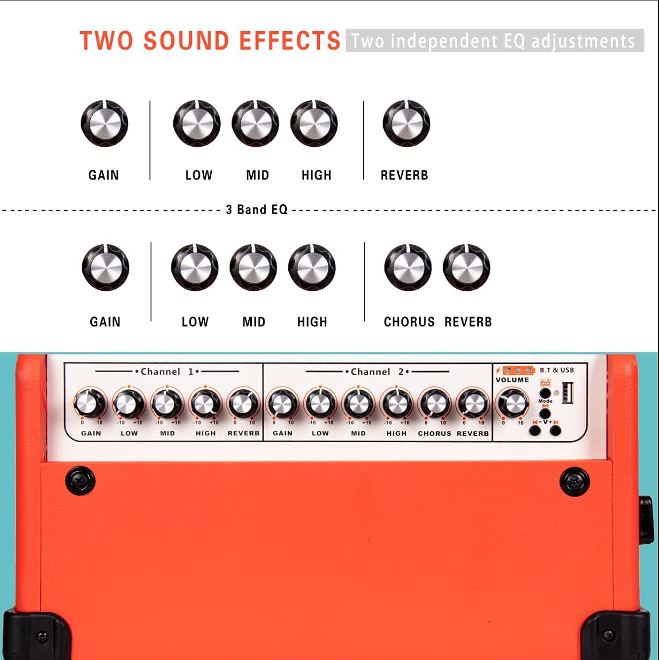 - 【100Watt】It has enough power for your needs, able to fit in different situations like live, studio, solo performance and practice, giving you more freedom to control your sound to be heard over the other musicians without pushing your amp out of its optimal operating range