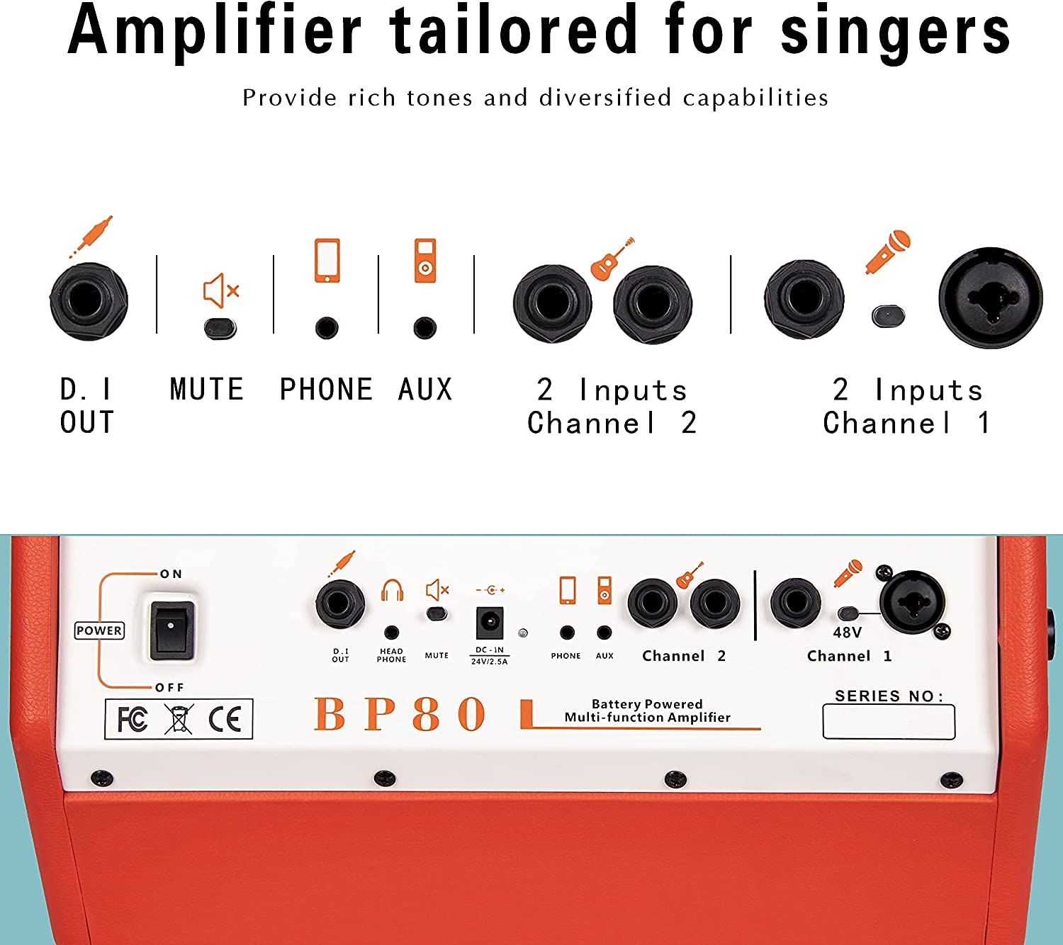 Coolmusic BP80 100 W Outdoor Bluetooth Amplifier with Rechargeable Battery, Aux Input, 48V fantasy power supply supports condenser microphone, Busking amp